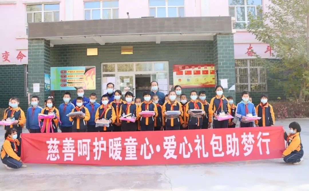 用爱守护,助梦前行,2021年11月8日和10日,库车天山水泥有限责任公司前往库车市林基路小学和库车市依西哈拉镇夏玛勒巴革村小学,为两个学校的困难学生带去了100套“爱心礼包”。