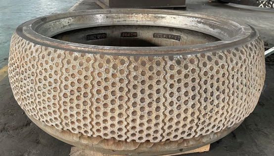 本次通过省级制造业单项冠军企业(产品)认定的金属复合陶瓷产品,采用先进的陶瓷颗粒表面改性处理技术,结合耐高温无机溶胶粘接剂以及有限元设计并优化多孔网络结构,最终产品使用寿命在同等工况条件下比高铬铸铁高出2~5倍,降低了原材料及人工成本,提高了产量。