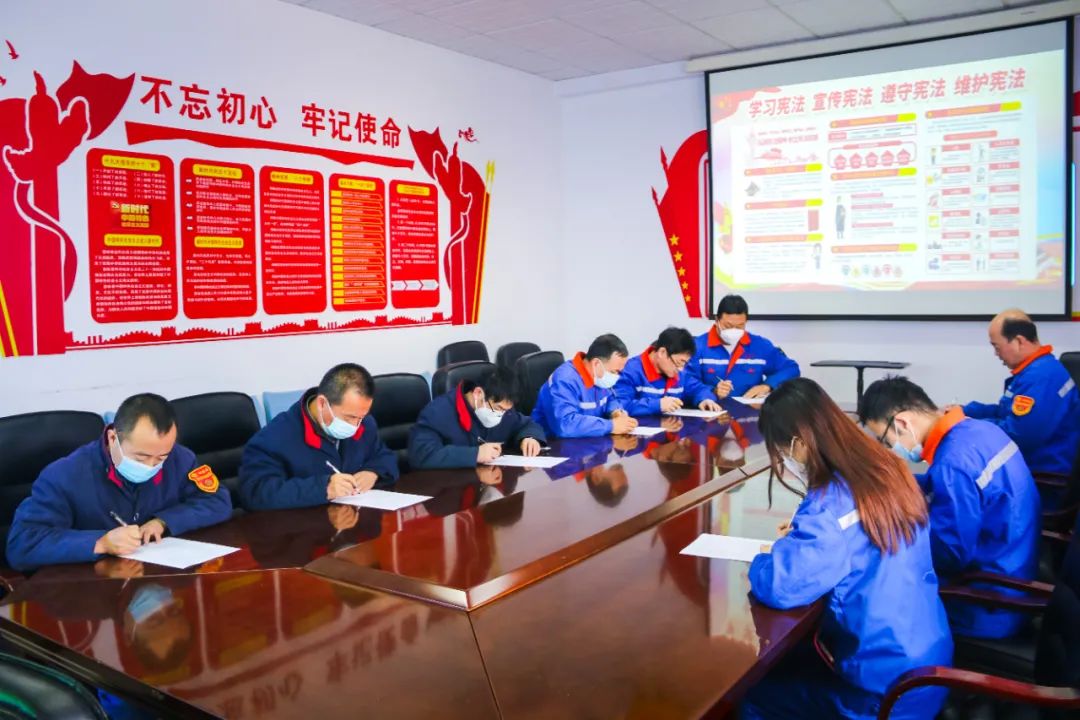 凯盛科技组织所属企业在做好疫情防控的基础上,积极开展宪法宣传教育活动。深入学习领会党的二十大确立的重大理论观点和重大战略思想、提出的战略任务和重大举措,学习宣传习近平法治思想和习近平总书记关于宪法的重要论述,在“凯盛人”公众号上发布《学习宣传贯彻党的二十大精神,推动全面贯彻实施宪法》宣传文章及宣传海报,组织员工积极参与宪法知识有奖竞答活动。各所属企业也积极开展各类丰富的宪法宣传学习活动。此次宪法宣传活动的开展,全体干部职工对党的二十大精神有了更加深入理解,宪法意识进一步增强,法治宣传教育达到新高潮,做到了普法教育与依法治企相结合,为凯盛科技实现高质量发展营造了良好的法治环境。