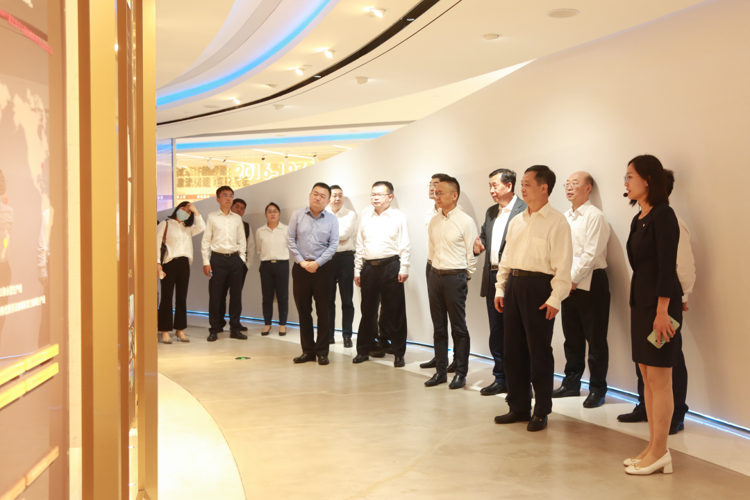 李新华陪同潘福一行参观集团展厅,详细介绍了集团的发展历程,新材料业务发展及应用领域等情况。
