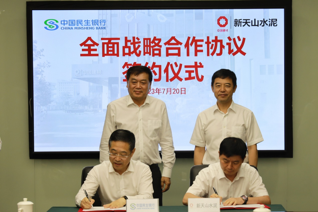 近日,新天山水泥与民生银行在中国建材大厦举行战略合作协议签约仪式。多年来民生银行一直与新天山水泥下属重点企业开展了深入而广泛的合作。作为首批与新天山合作的金融机构之一,未来新天山与民生银行将不仅在信贷支持、投行业务等方面加强合作,还将在境外融资、绿色金融、低碳发展、精益管理、供应链金融、员工金融服务等六大领域开拓新的合作空间。