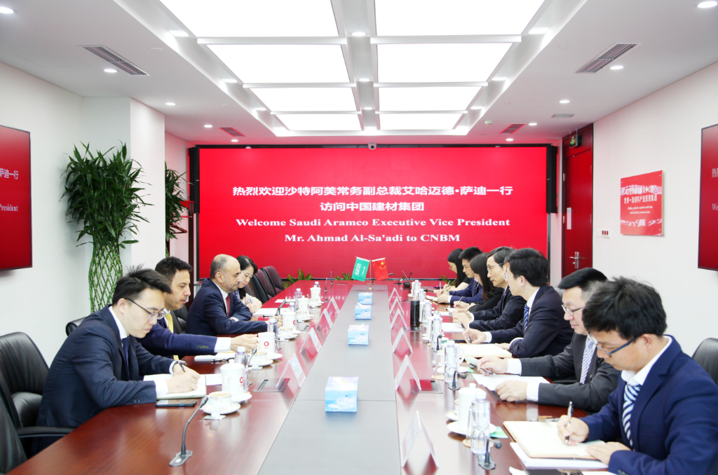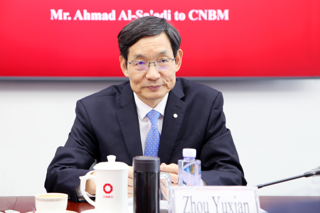 周育先对艾哈迈德·萨迪一行到访表示欢迎,对沙特阿美长期以来给予中国建材集团及所属企业的支持表示感谢,并简要介绍了集团生产经营、产业发展以及集团在沙特企业情况。他表示,中国建材集团新材料业务发展取得积极成果,未来计划在中东地区布局实施,沙特阿美将成为战略合作伙伴之一。中国建材集团本着真诚合作、共谋发展的原则,依托自身研发、产业、服务方面优势,围绕沙特阿美主营业务及多元化转型发展战略需求,提出了“1133”全方位战略合作方案。希望双方共同探讨新能源、新材料、先进基础建材等产业合作,为沙特阿美转型发展提供有力支持。