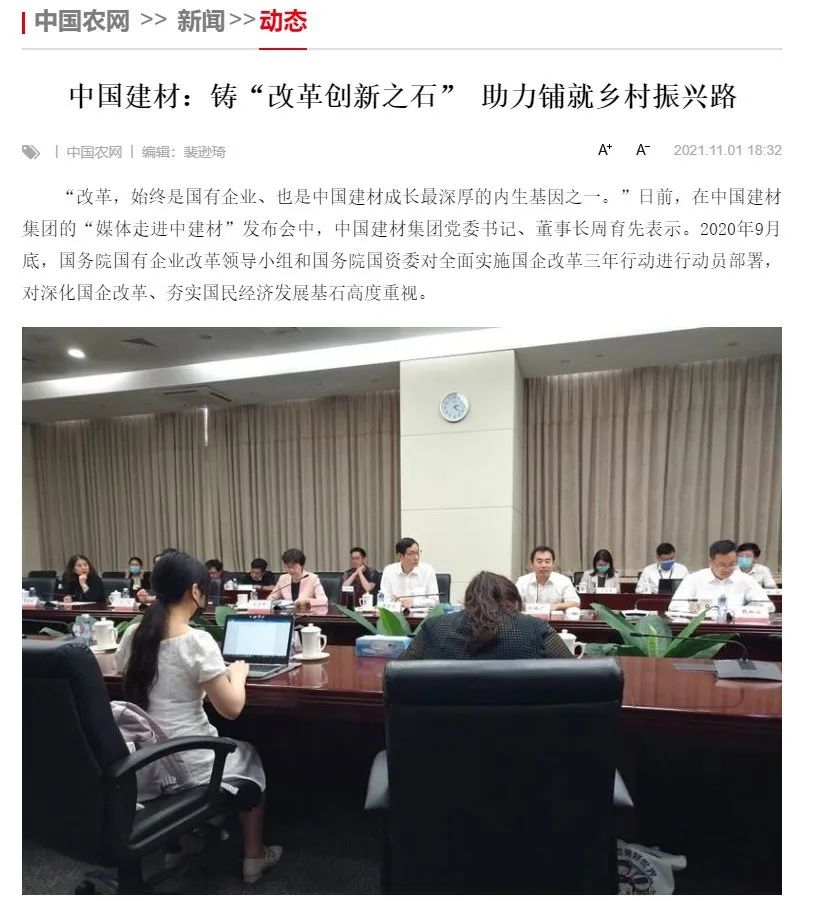 来源:国企杂志、中国建材杂志、中国农网、中国建材报、证券日报 发布时间:2021-11-08国资委宣传局组织媒体走进中建材