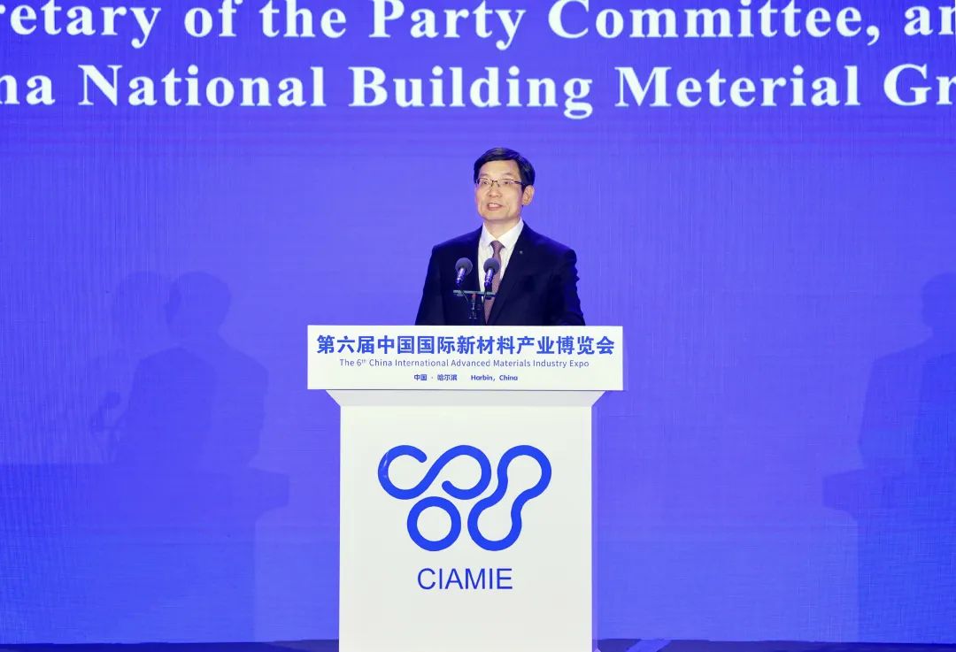 来源:集团办公室 发布时间:2023-08-318月29日,由工业和信息化部、黑龙江省人民政府共同举办,以“合作共享新机遇、创新激发新动能”为主题的第六届中国国际新材料产业博览会(以下简称新博会)在哈尔滨开幕。黑龙江省委书记、省人大常委会主任许勤,工业和信息化部党组成员、副部长王江平,中国工程院副院长、第十四届全国政协常委李仲平等出席开幕式并致辞。黑龙江省委副书记、省长梁惠玲主持开幕式。中国建材集团党委书记、董事长,中国建材股份党委书记、董事长周育先受邀出席会议,并作了题为《坚持创新驱动 深化合作共赢 携手共创新材料产业高质量发展新未来》的主旨演讲。