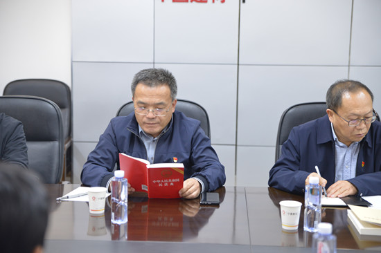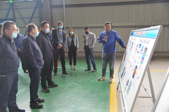 宁夏回族自治区工业和信息化厅二级巡视员李怀马、原材料处处长金立军、节能与综合利用处处长张建平,政策法规处副处长张红英等一行参观宁夏赛马公园、职工菜地、支部阵地、智能仓储、智能装车。全体人员参加主题党日学习会,学习会由金立军主持。李怀马带领全体党员学习习近平总书记在黄河流域生态保护和高质量发展座谈会上的讲话精神。