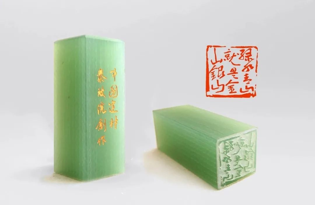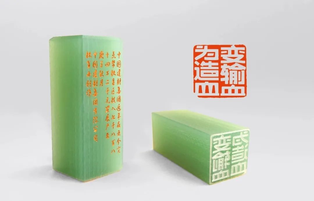 材质说明:以玻璃纤维和环氧树脂为材质,将现代科技与传统文化相融合,采用真空灌注之工艺,精工打磨,制成此印章。表面光润,色泽温和,晶莹剔透,宛若玉石,同时,结构细密,不易破损。
