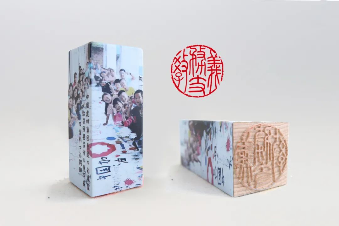边款一:中国建材集团“善建”七彩课堂给贫困县留守儿童带来丰富的“七彩假期”配图说明:“善建”七彩课堂已连续举办两年,形成青年志愿服务品牌。今年面对疫情挑战,阻断不了志愿者们的热情和对孩子们的关爱,七彩课堂设立了9个教学点,覆盖360余名学生,印章上的图片为志愿者在绥江县授课。展览地点: