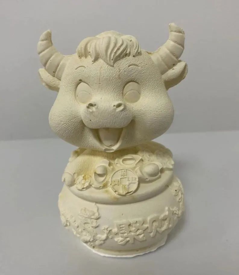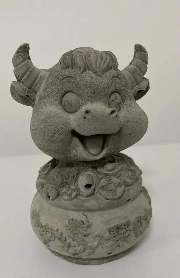 材料简介:用建筑石膏制作的生肖牛,主要成份是硫酸钙,在水泥中起缓凝作用。建筑石膏具有凝结硬化、体积略有膨胀,具有易成型、调节水泥凝结时间、隔热保温、保湿作用,具有很好的防火、耐水、耐久、抗渗、抗冻性能。