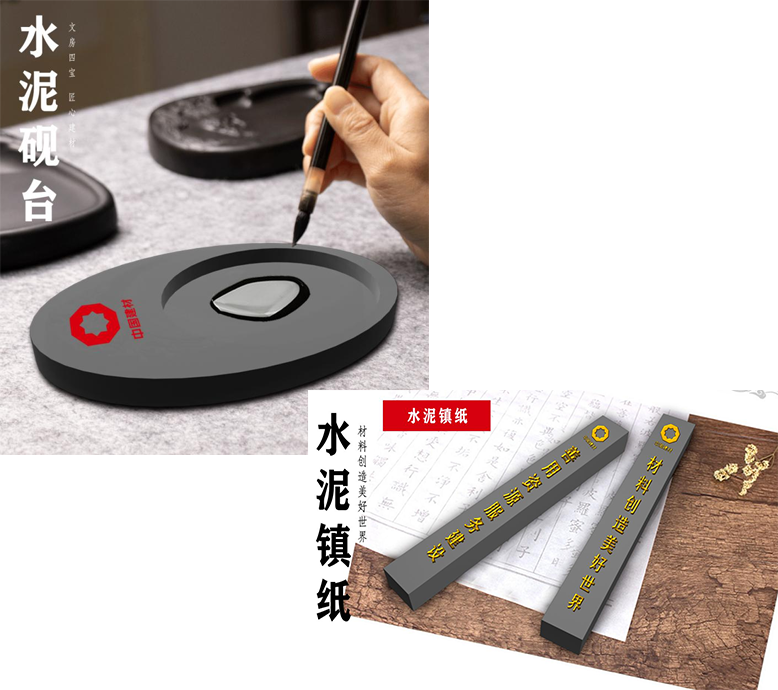 镇纸是放置在书桌案上的文房用品,是写字作画时用以压纸的工具。有金、银、铜、玉、木、竹、石、瓷等材质。这款水泥材质的镇纸为长方形设计,通体细长短小,使用方便。砚台、镇纸体现水泥材质,同时使用者时刻能看到醒目的烫金色集团标志、企业使命及核心理念,也是对企业文化的一种宣传。