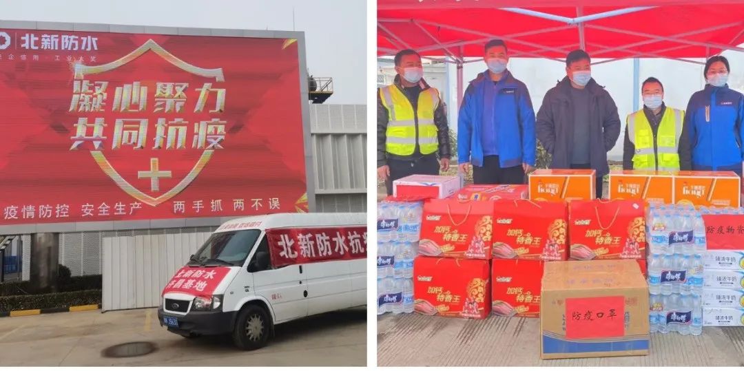在河南,北新防水中部区域公司在接到许昌全面封城的消息后,迅速组织志愿者们采购口罩、食品、消毒液等各类防疫物资,慰问坚守在生产一线的职工。同时在严格做好自身防护措施的情况下前往黑董村村委、辛集村村委、107国道新郑长葛交接处,为疫情值守的工作人员送去了防疫物资,用实际行动助力疫情防控。
