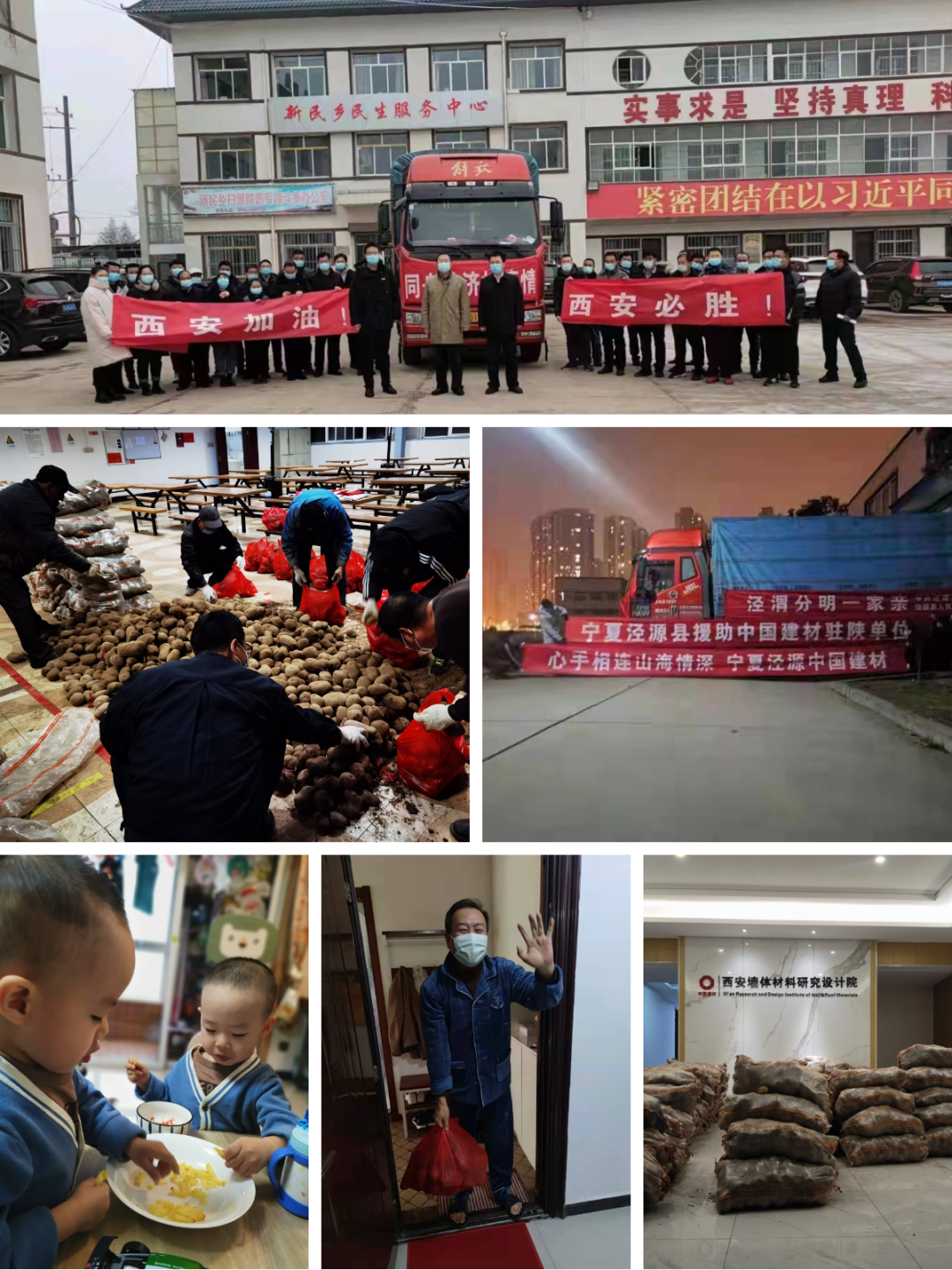 岁末年初,西安疫情防控形势严峻之时,中国建材集团定点帮扶地区——宁夏泾源县组织了20000余斤特产连夜送达西安,与建材总院驻陕单位共抗疫情。在2021年宁夏疫情突发时,建材总院第一时间送上了11.2万元的防疫物资,让中国建材和泾源人民结下了深厚的情谊。在共同抗击西安新冠疫情的关键时刻,泾源县委、县政府和干部群众心怀感恩之情,心系中国建材集团,情系与泾源人民共同脱贫致富、携手乡村振兴的帮扶单位和员工,为总院驻陕单位伸出了友爱之手。病毒无情,人间有爱。泾源县的爱心物资与中国建材的振兴帮扶、防疫物资遥相呼应,体现了双方“心连心”的真挚情谊,也为这个寒冬增添了不少温暖。