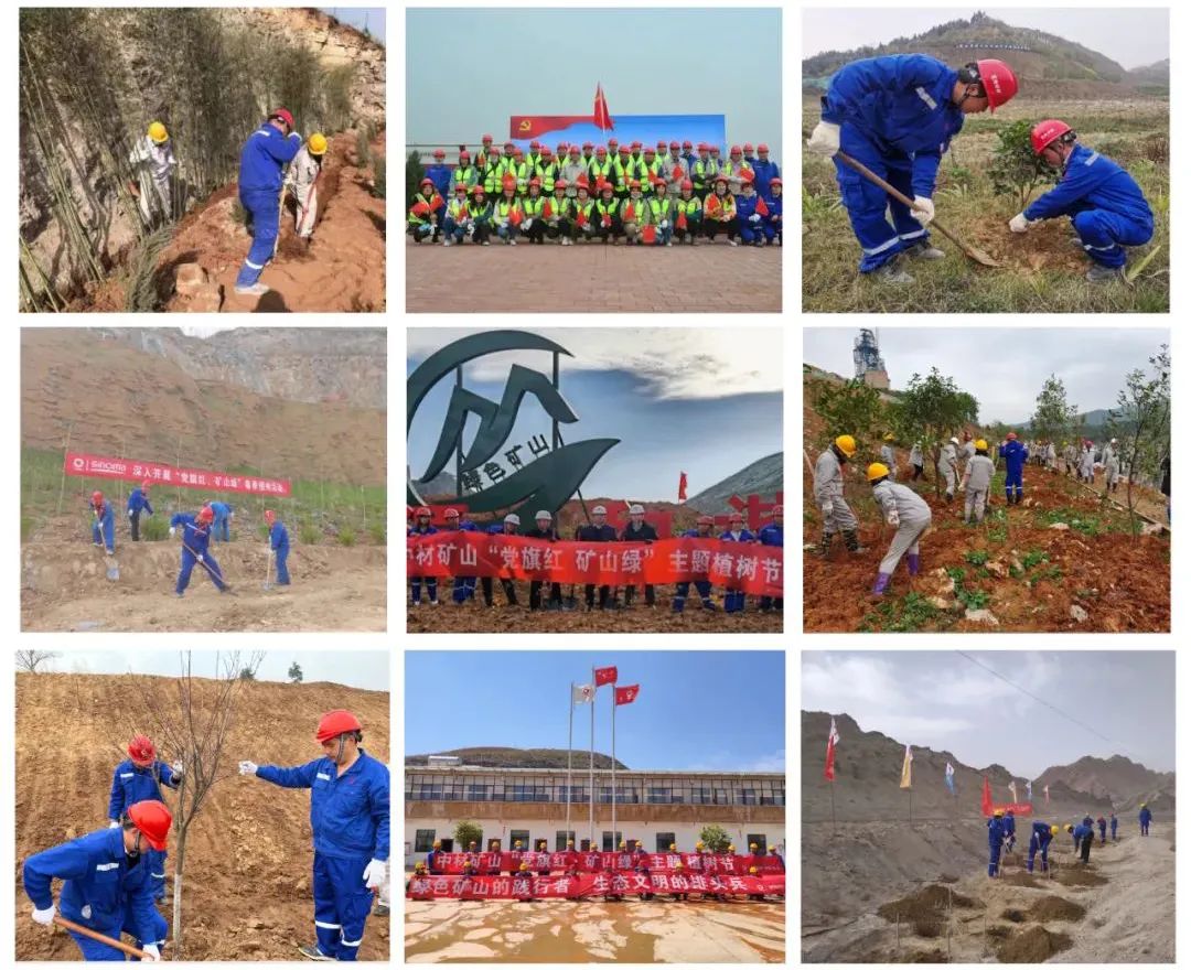 中材矿山在全级次范围内异地同步开展“党旗红 矿山绿”主题植树活动,67个分子公司均与业主单位联动,参加了植树活动,与业主一起为绿水青山做出央企榜样。植树现场,人人动手,挥锹铲土、培土围堰、提水浇灌,认真细致栽种好每一株树苗,植树现场一片繁忙景象,气氛热烈。