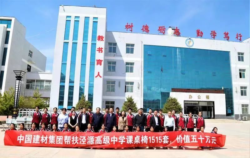 在中国建材集团挂职干部、泾源县委常委、政府副县长杨璞的积极协调下,中国建材集团先后投入教育扶贫资金700万元,帮助泾源高级中学建设智慧云教室21间,投资组建泾源县中国建材集团善建基金篮球队,改造室外篮球场2432平方米,为学生购置单人单桌课桌椅1515套,为学校购置改造VR教室、3D实验室、创客实验室,帮助学校进行“互联网+智慧校园”改造提升,建设智慧图书室、校园电视台、录播教室。