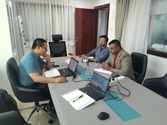 阿联酋LEC项目工程分公司王玺彬在岗与施工单位会谈