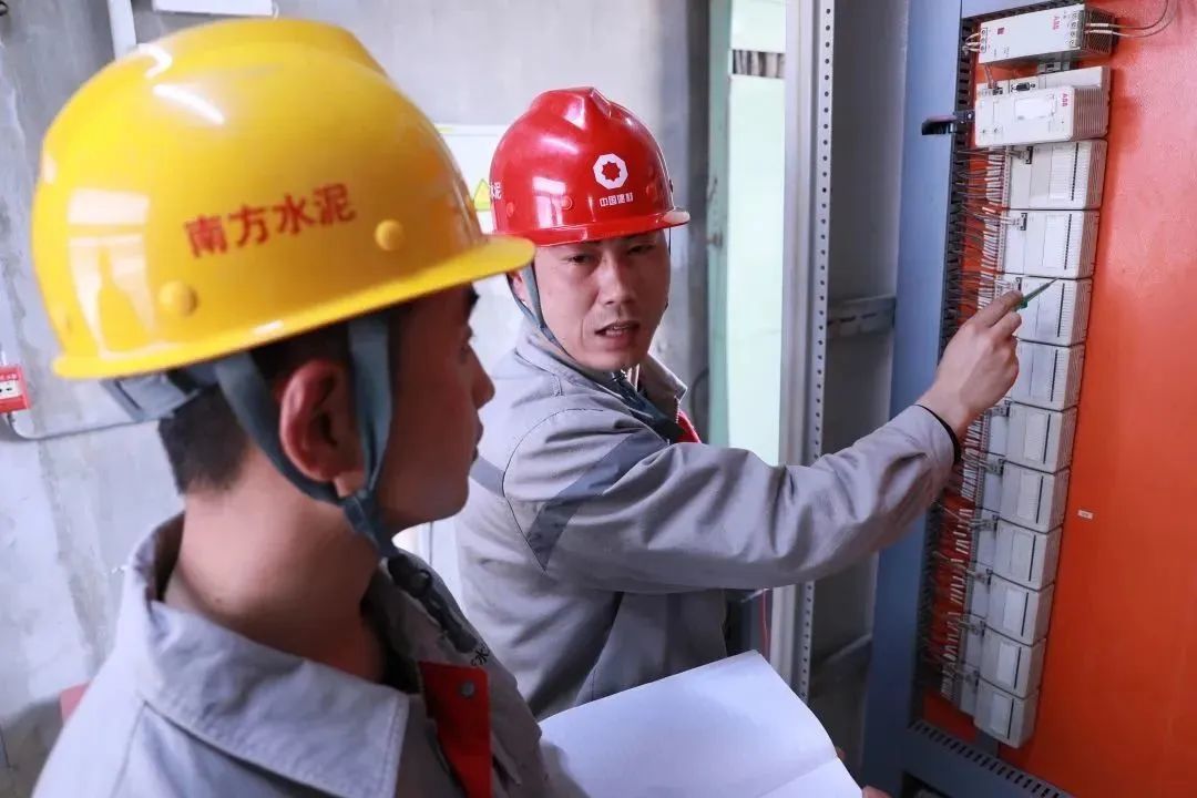 滁州中联车间班长带领青年员工排查在生产过程中出现的电气故障,细致分析、耐心讲解。