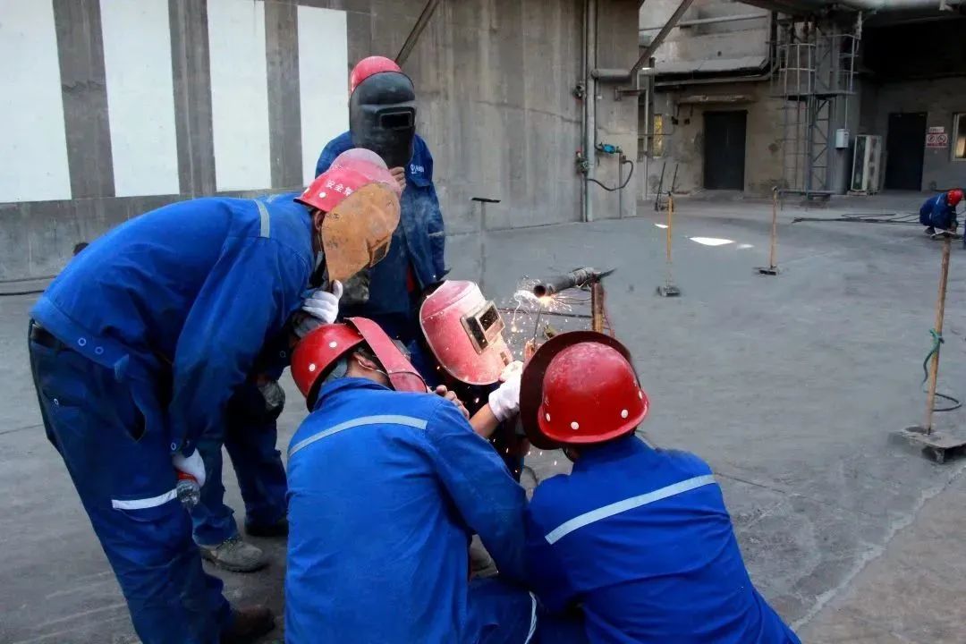 新疆哈密天山电焊技能大师邹波现场给生产车间职工讲解焊接的技巧与手法。