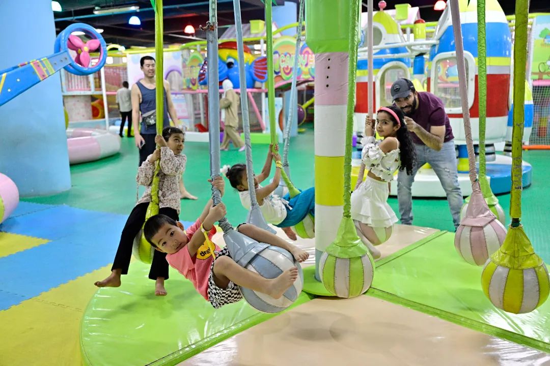 此外,家属们参加公司准备的亲子活动,活动内容包括趣味保龄球、礼物套圈圈等,派驻中方员工子女与埃方员工子女同台竞技,趣味十足。之后孩子们又前往游乐园游玩了碰碰车、卡丁车、旋转木马、室内障碍穿越等娱乐项目活动。巨石埃及公司采购部经理助理杨洋的儿子杨子昂,在爸爸妈妈的陪伴下无比兴奋:“我的爸爸是个大忙人,经常不能陪我,今天他陪了我一整天,我很高兴,而且我今天认识了很多埃及的小朋友,我们一起玩了荡秋千!”