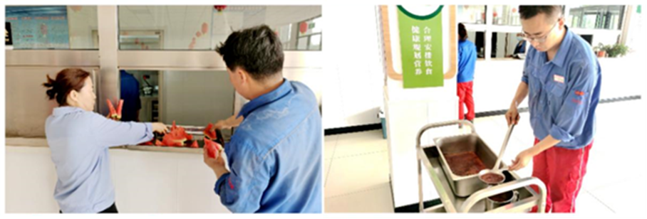 为做好防暑降温,保障一线员工的身体健康,中宁赛马、吴忠赛马持续开展在每日准备午餐和晚餐时,相继为广大职工提供西瓜、绿豆汤等食品和防暑饮品,送去夏日的清凉与关怀。