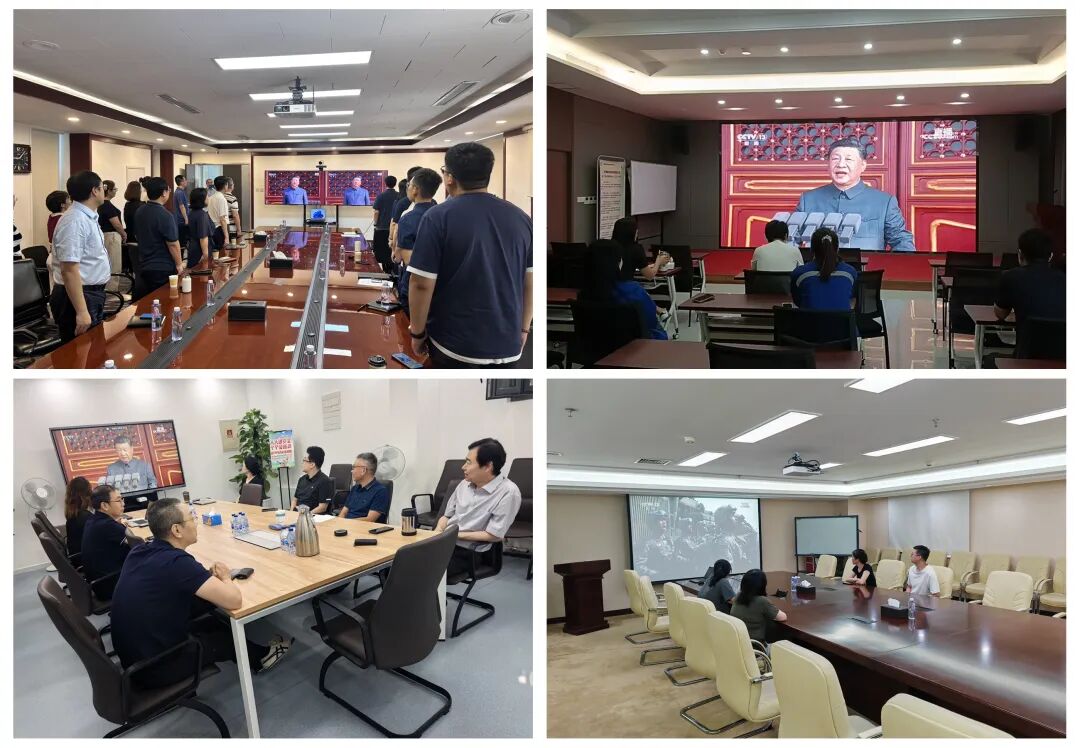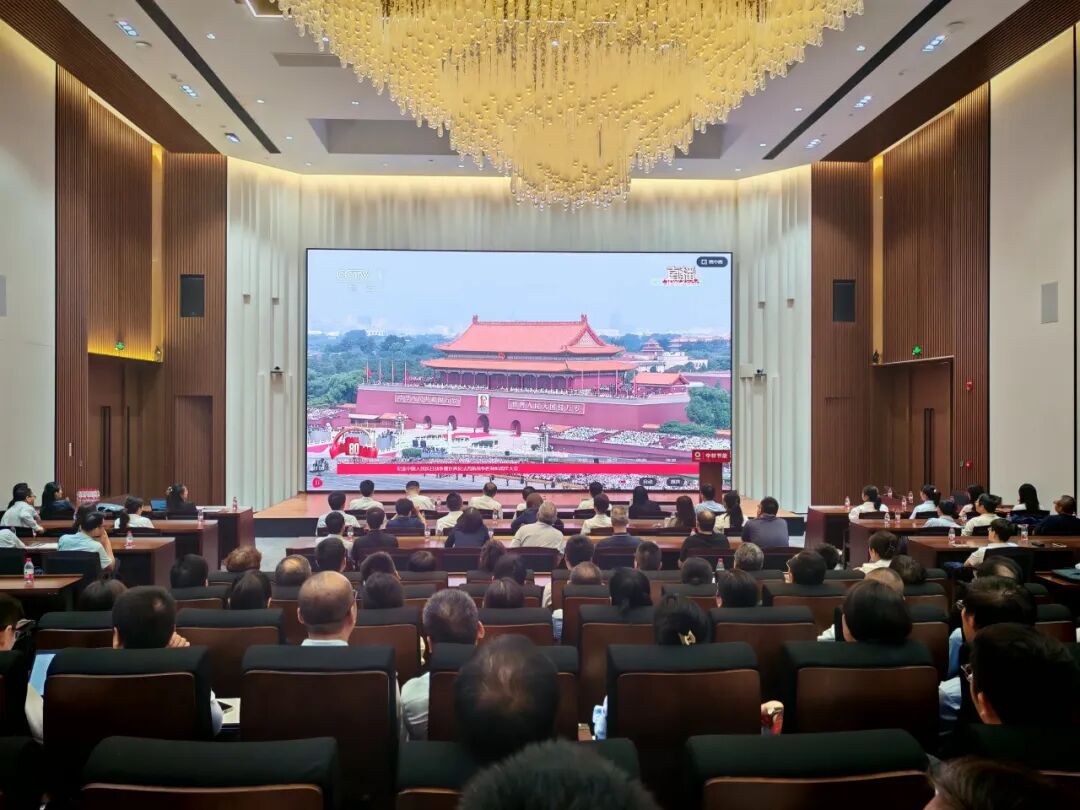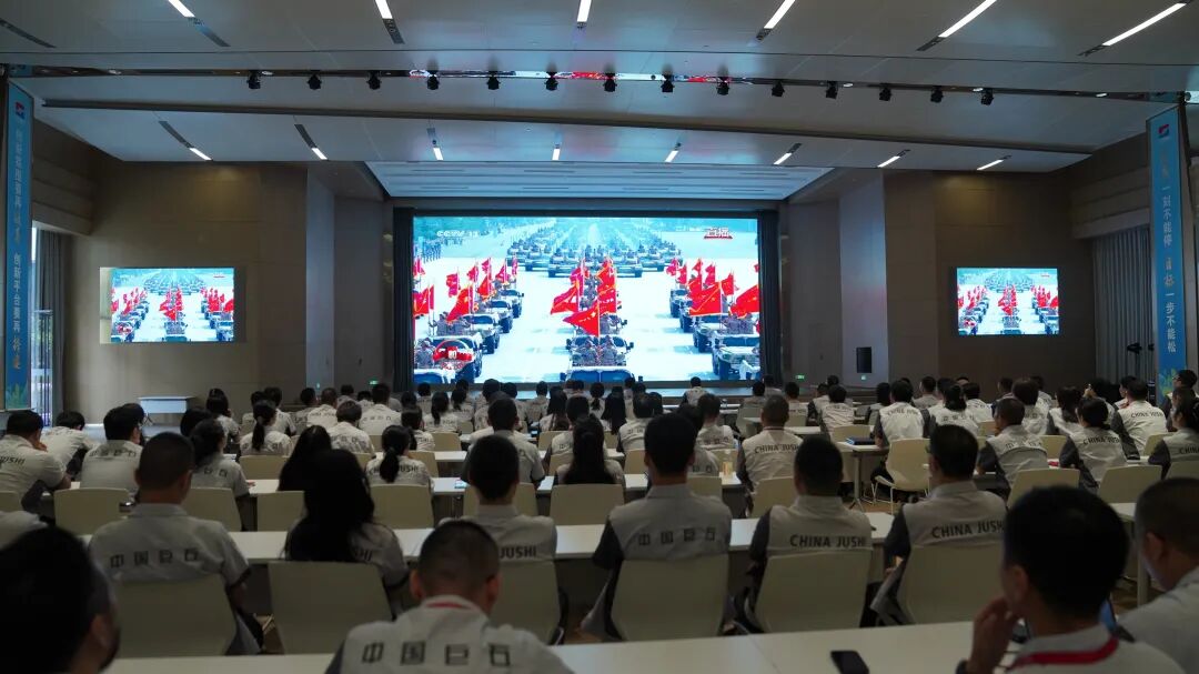 中国巨石组织党员以及员工代表观看纪念中国人民抗日战争暨世界反法西斯战争胜利80周年阅兵仪式现场直播,见证新时代人民军队政治建军新风貌、力量结构新布局、现代化建设新进展、备战打仗新成效。