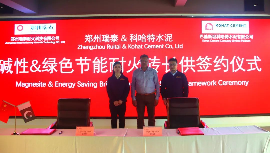 近日,集团所属郑州瑞泰同巴基斯坦科哈特水泥签署海外业务战略合作框架协议。郑州瑞泰自主研发的多系列低导热节能高温产品较好地解决了水泥窑散热损失高的行业难题,开创绿色发展新局面,助力水泥行业绿色低碳转型发展,双方将在减碳节能环保方面进一步加深合作。