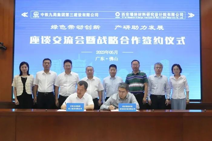 近日,西安墙材院与中铁九局三公司签订战略合作协议。双方将进一步深化在海绵城市、固废综合利用、再生建材产品研发推广、示范项目建设等领域的合作,充分利用各自优势,共同探索企业发展新模式,增强市场竞争能力,实现产研融合、互利共赢。