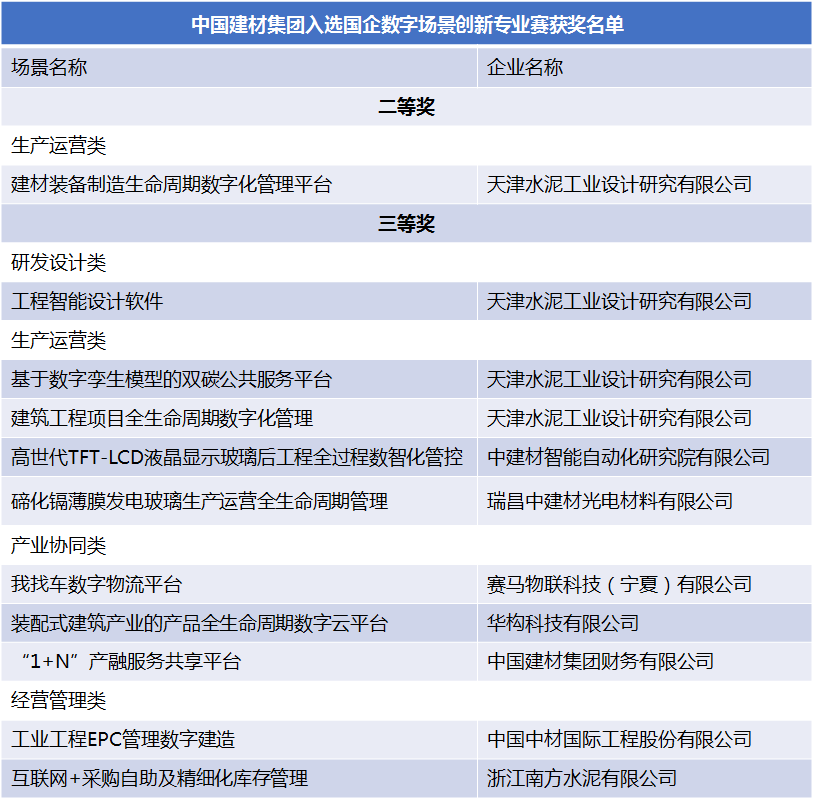 稳增长 创价值 | 中国建材集团多个场景荣获国资委首届“国企数字场景创新专业赛”奖项……