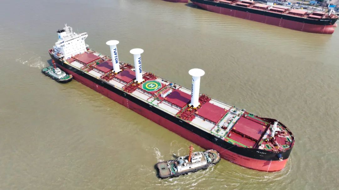 该技术已于2023年5月顺利通过江苏省级鉴定,属国内外首创;根据计算,应用该技术可实现15%以上的燃油节省,特定航线单条船可节约642吨燃油,减少碳排放排2058吨。目前,中复连众已经建成两条生产线批量生产旋筒风帆。